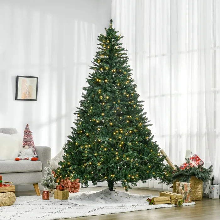 Árbol de Navidad HOMCOM 210 cm con luces LED cálidas y soporte metálico